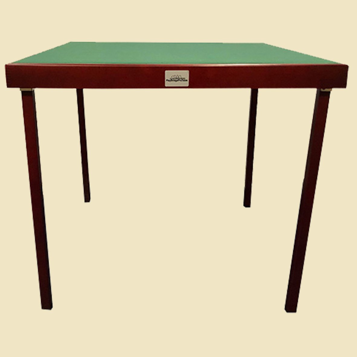 Quality mahogany stained wooden frame card table, with folding legs supported by strong metal hinges. It has a hard wearing foam backed microfibre playing surface. Generous size for four players.